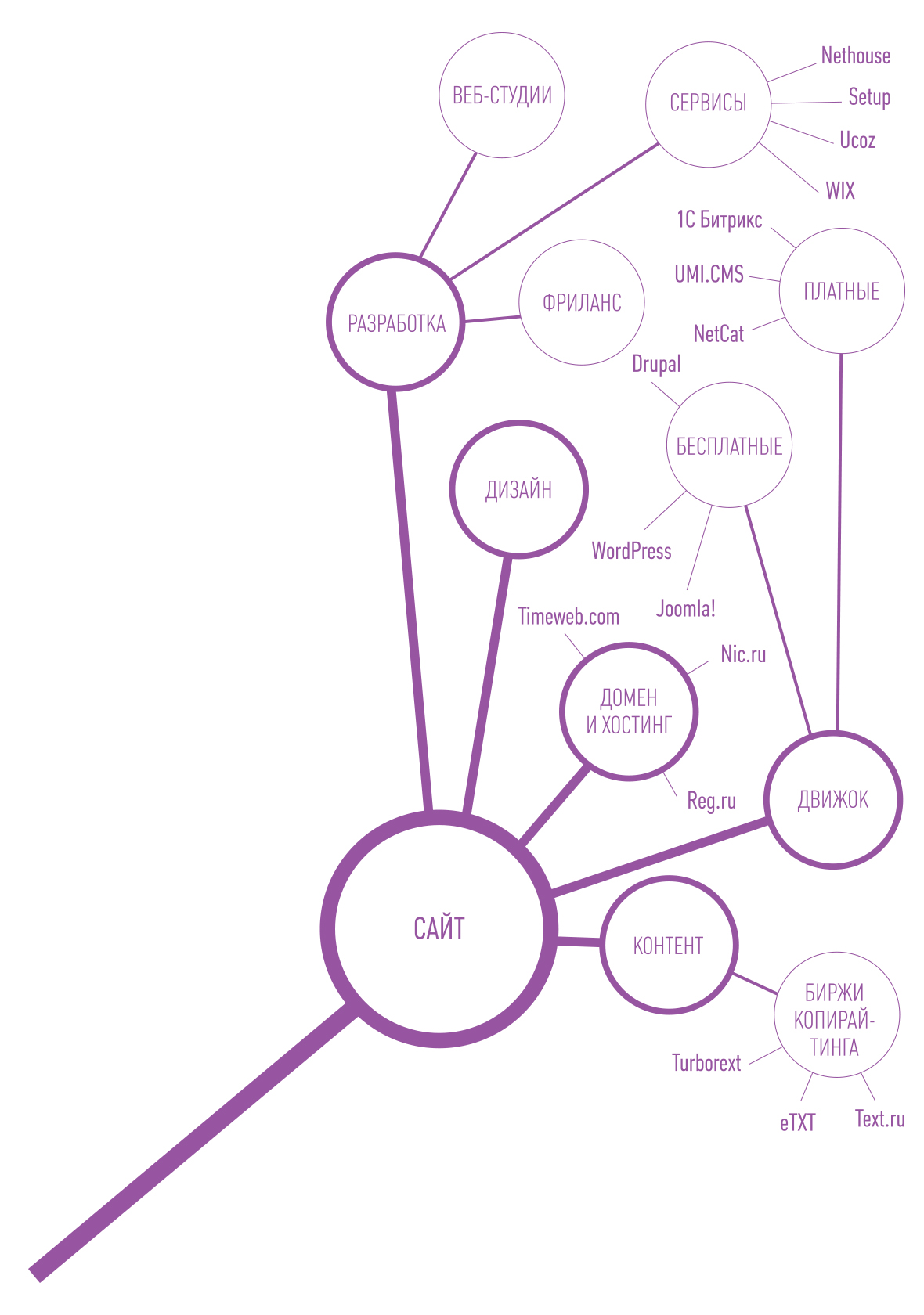 Схема состоит из 12 главных ответвлений. Каждая из «веток» раскрывает своё направление деятельности.