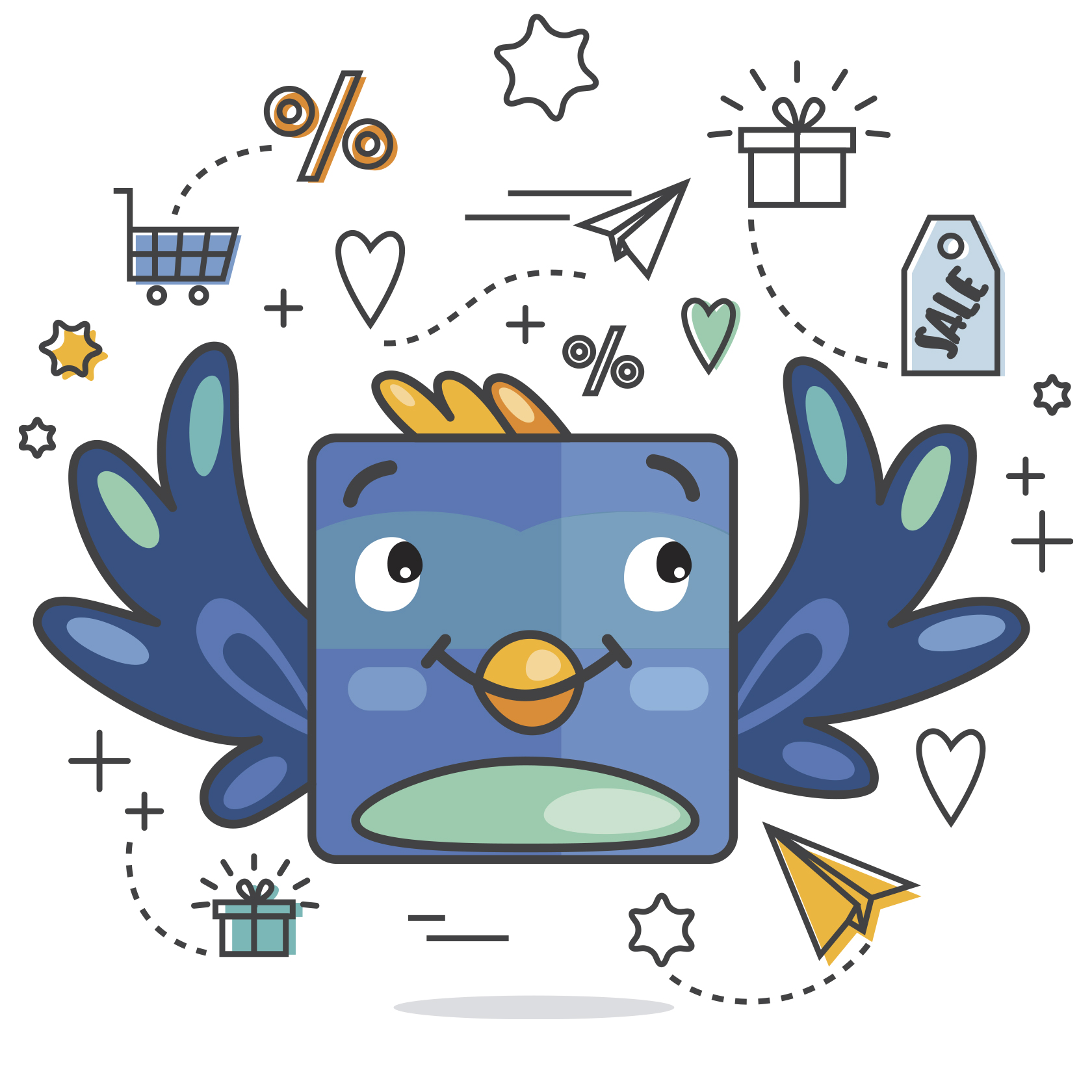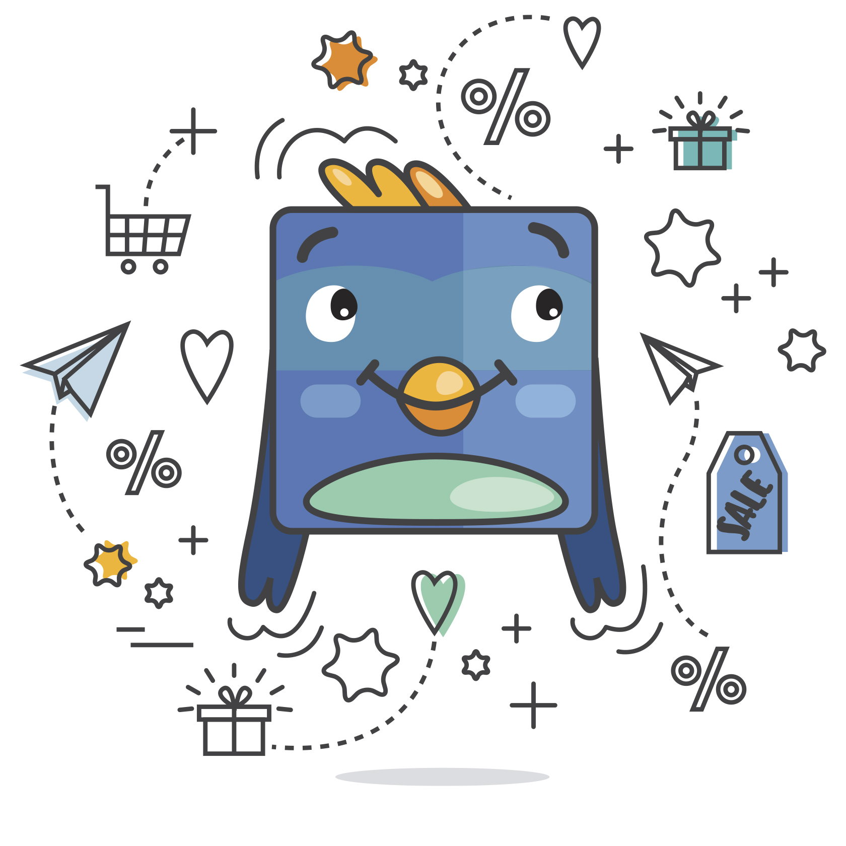 Заказчик поставил перед студией задачу придумать харизматичного персонажа (птицу) для сайта компании. Персонаж должен помогать покупателю разобраться в тонкостях покупок на интернет-площадке.