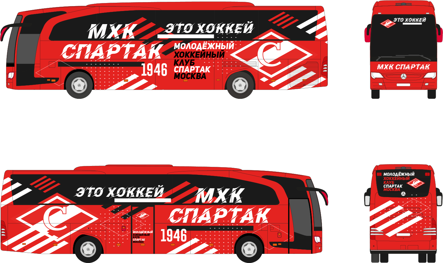 Разработка дизайна нового автобуса МХК Спартак 2020.