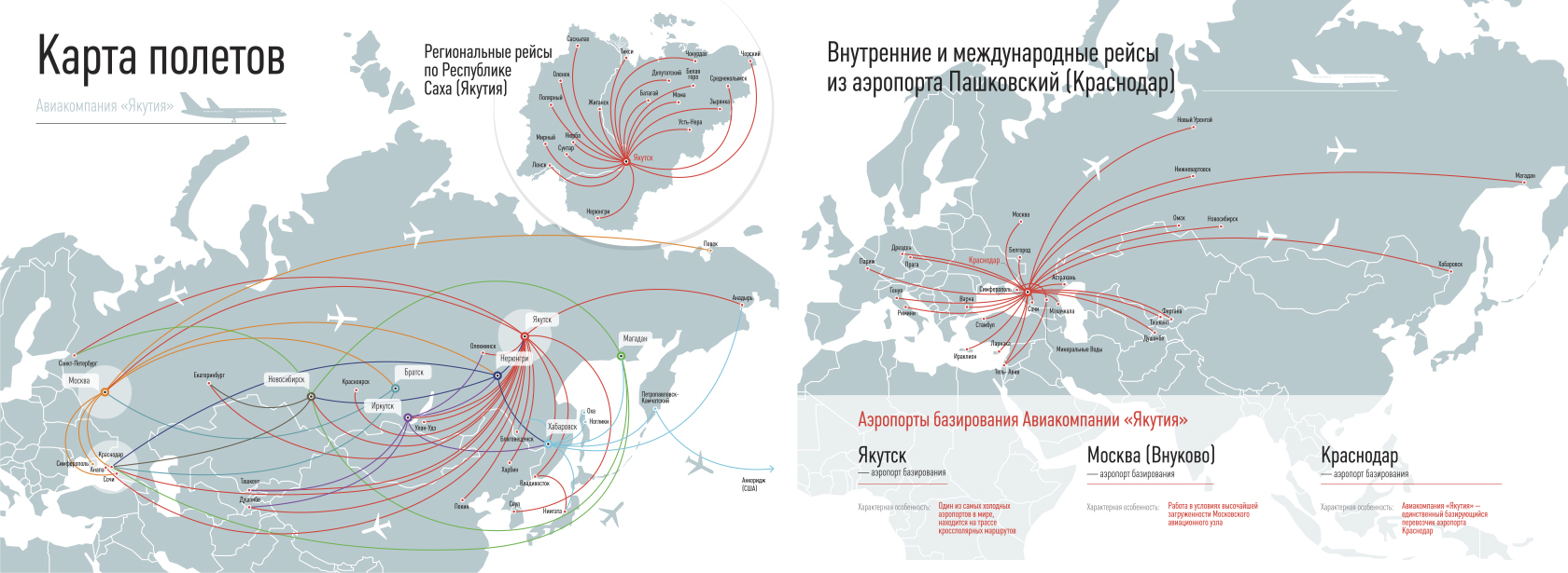 Дизайн-студия EASYCHART разработала инфографику в буклет авиакомпании Якутия.