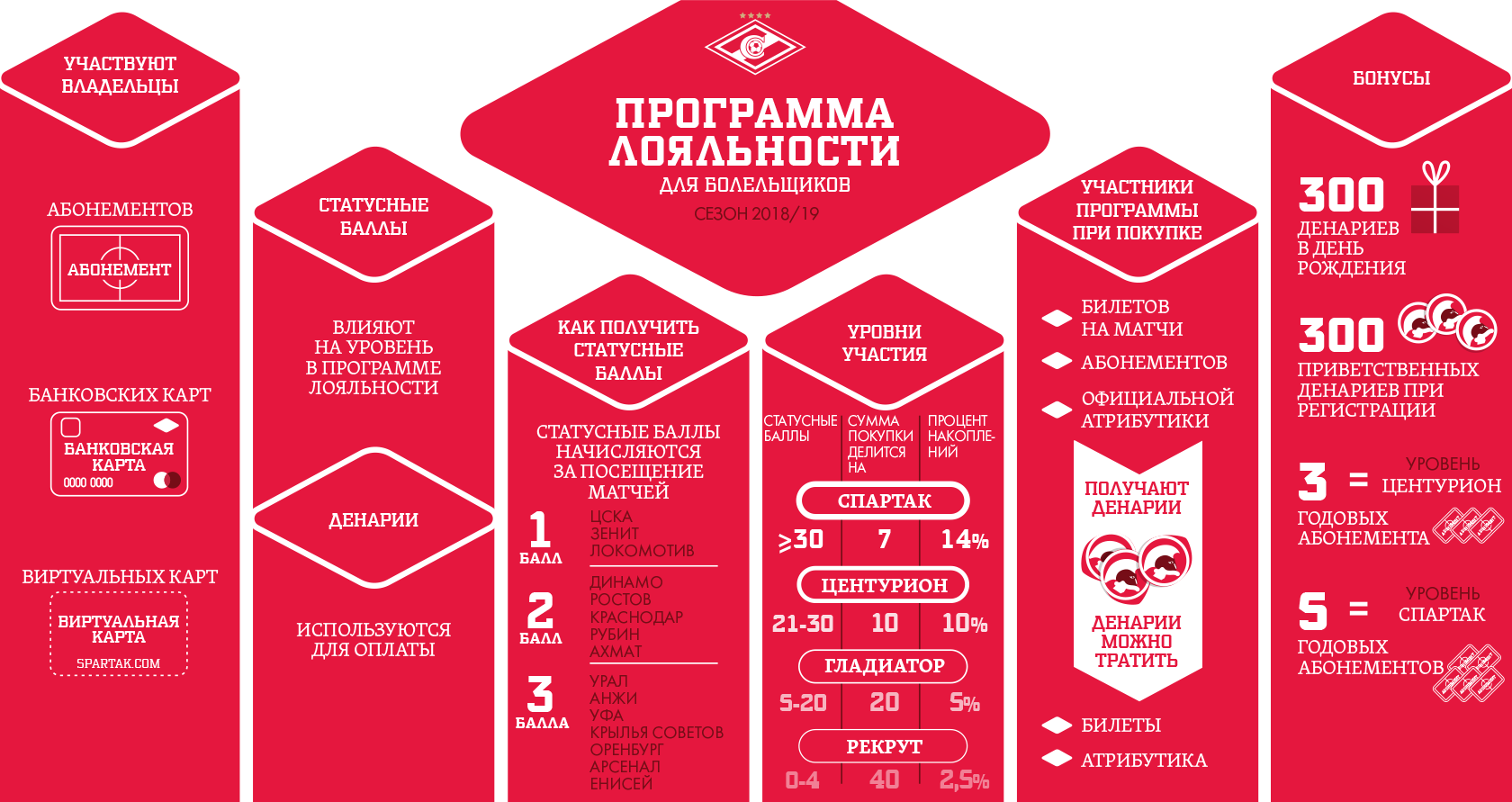 Разработка инфографики и пояснительных материалов для программы лояльности футбольного клуба Спартак.