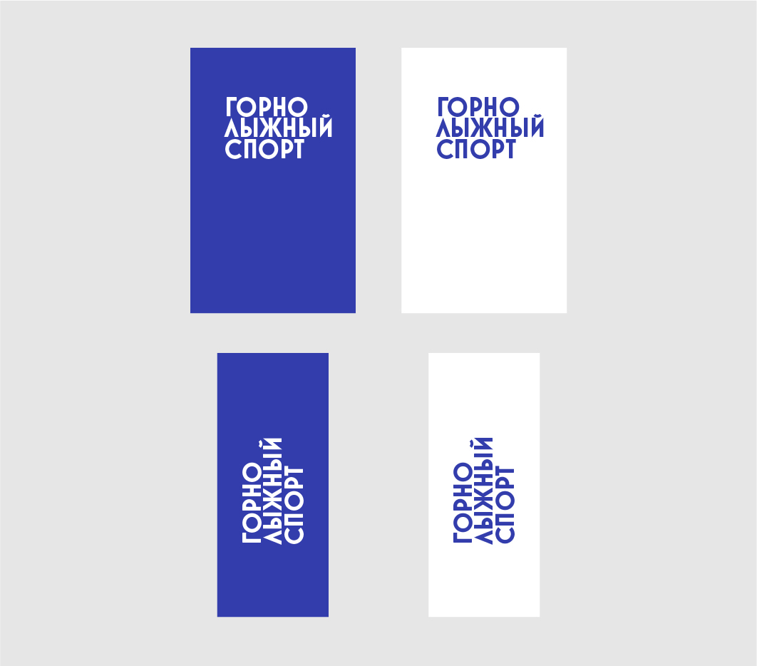 Для максимального акцента и сильной айдентики федерации горнолыжного спорта используем надпись «горнолыжный спорт» в три строки.