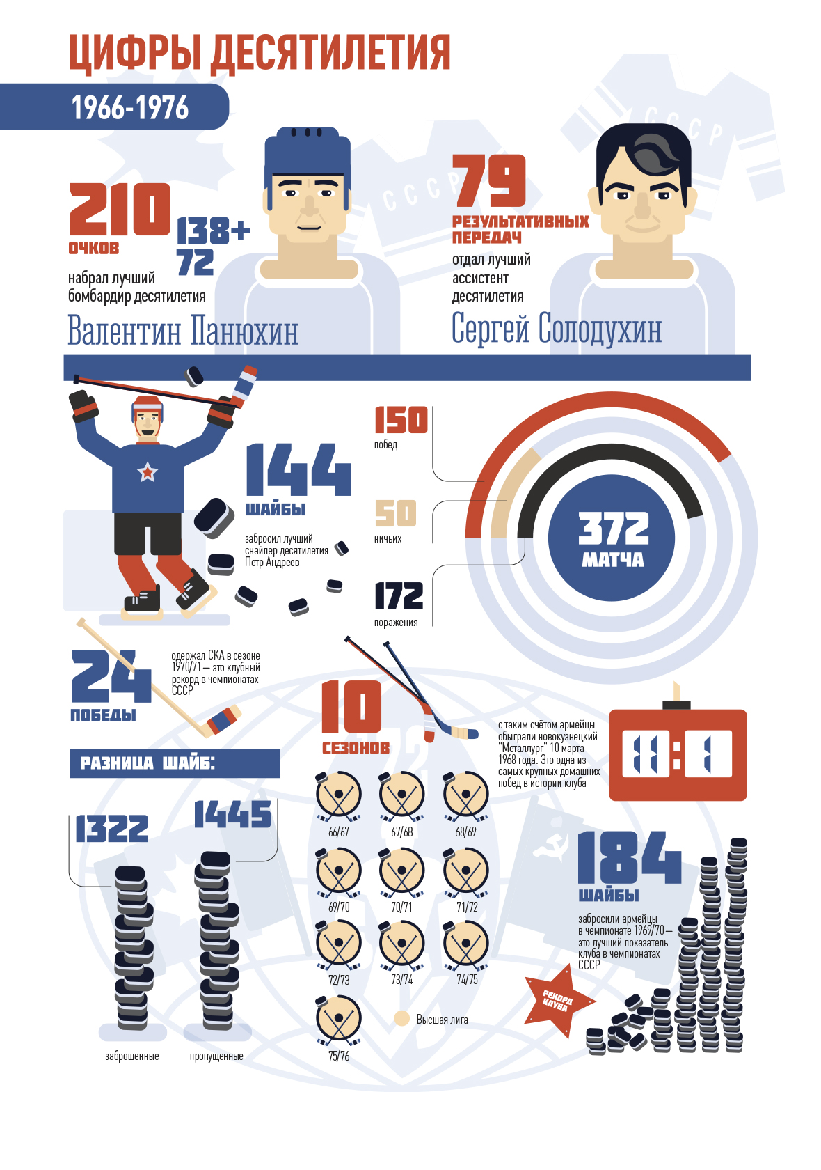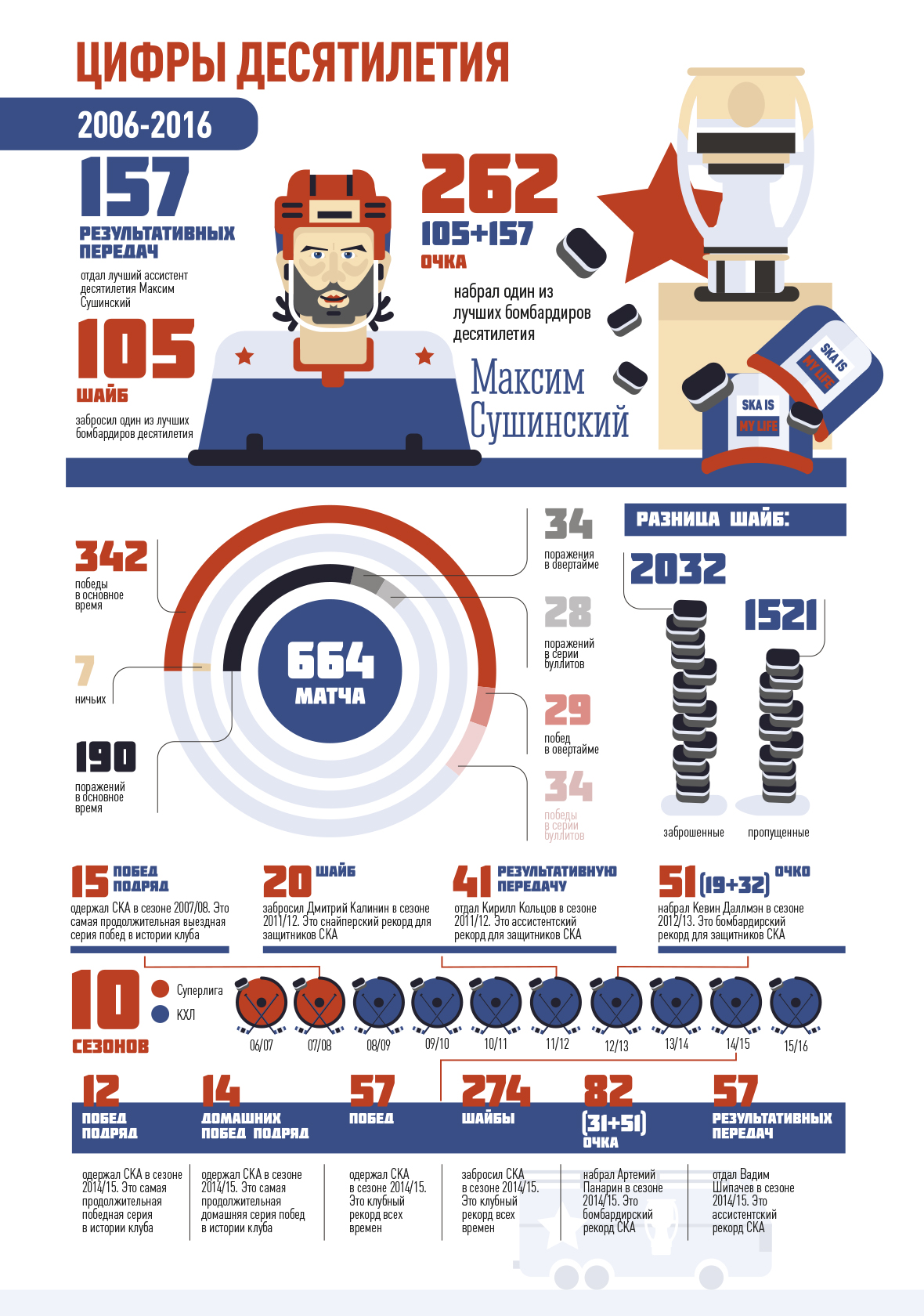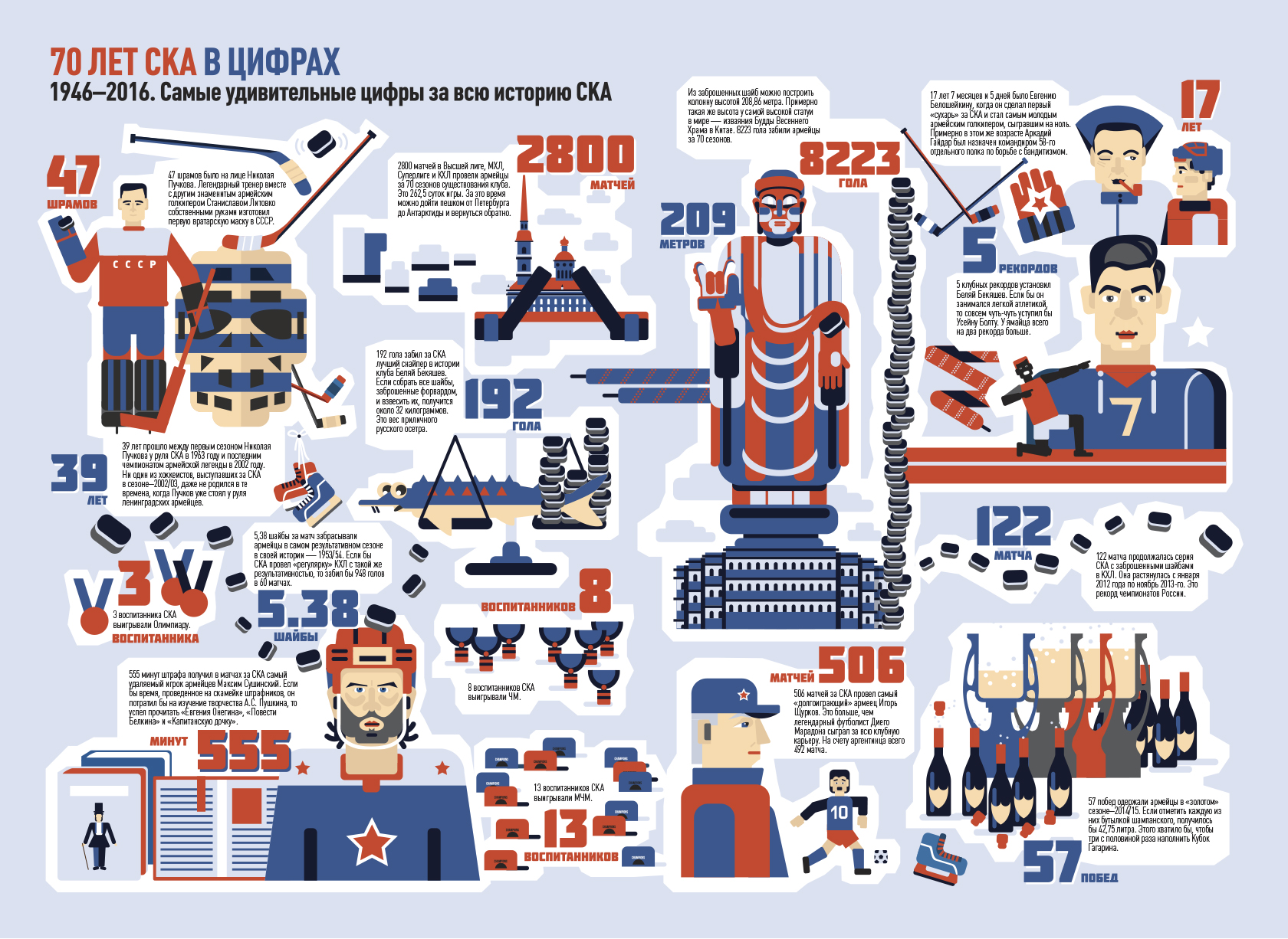 Большой юбилейный проект по разработке инфографики в официальный клубный журнал ХК СКА.