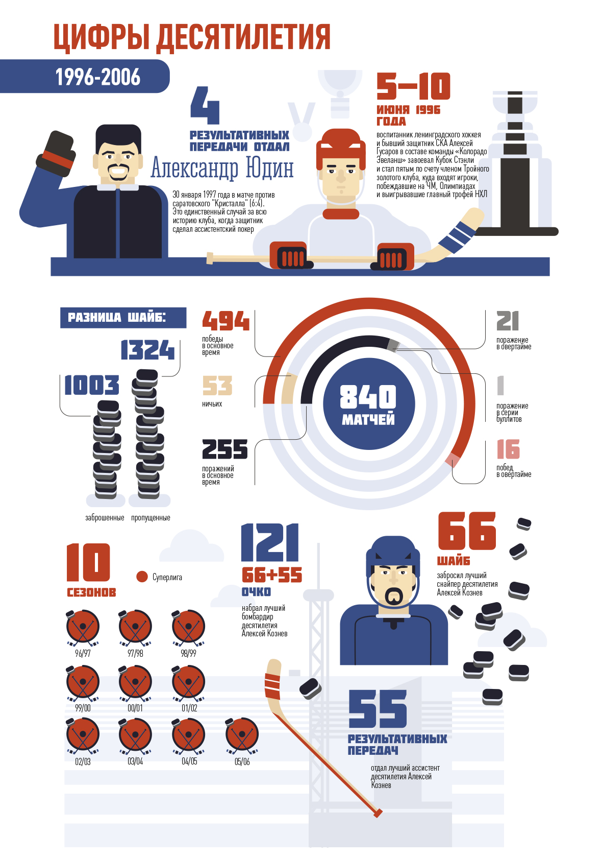 Дизайн-студия EASYCHART разработала серию инфографик к юбилею хоккейного клуба из Санкт-Петербурга.