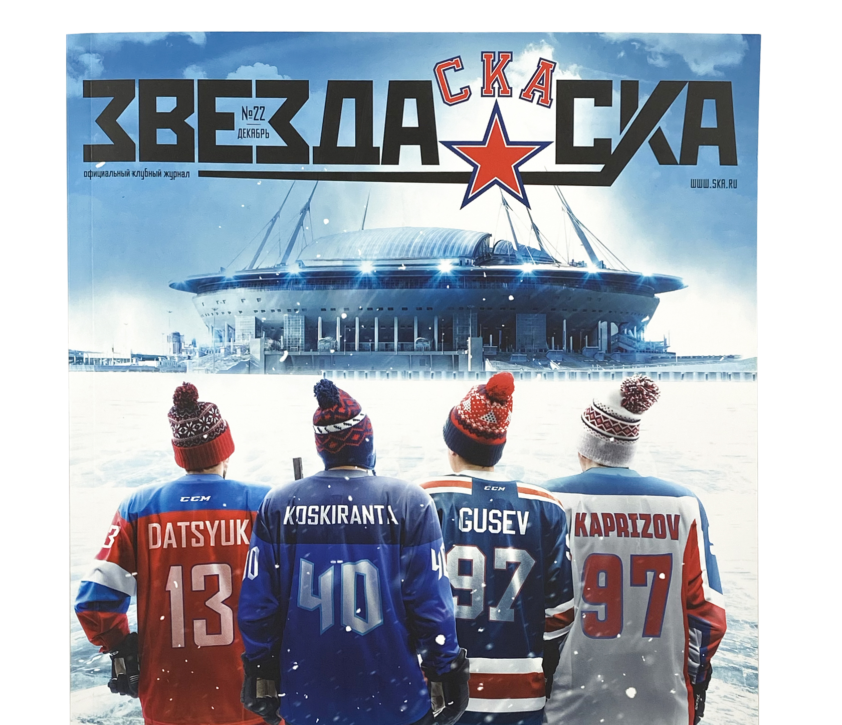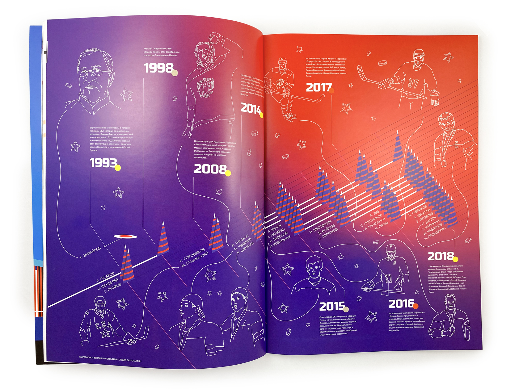 Студия EASYCHART разработала большую инфографику для официального журнала хоккейного клуба СКА. Необходимо было интересно подать информацию про игроков клуба в сборной.
