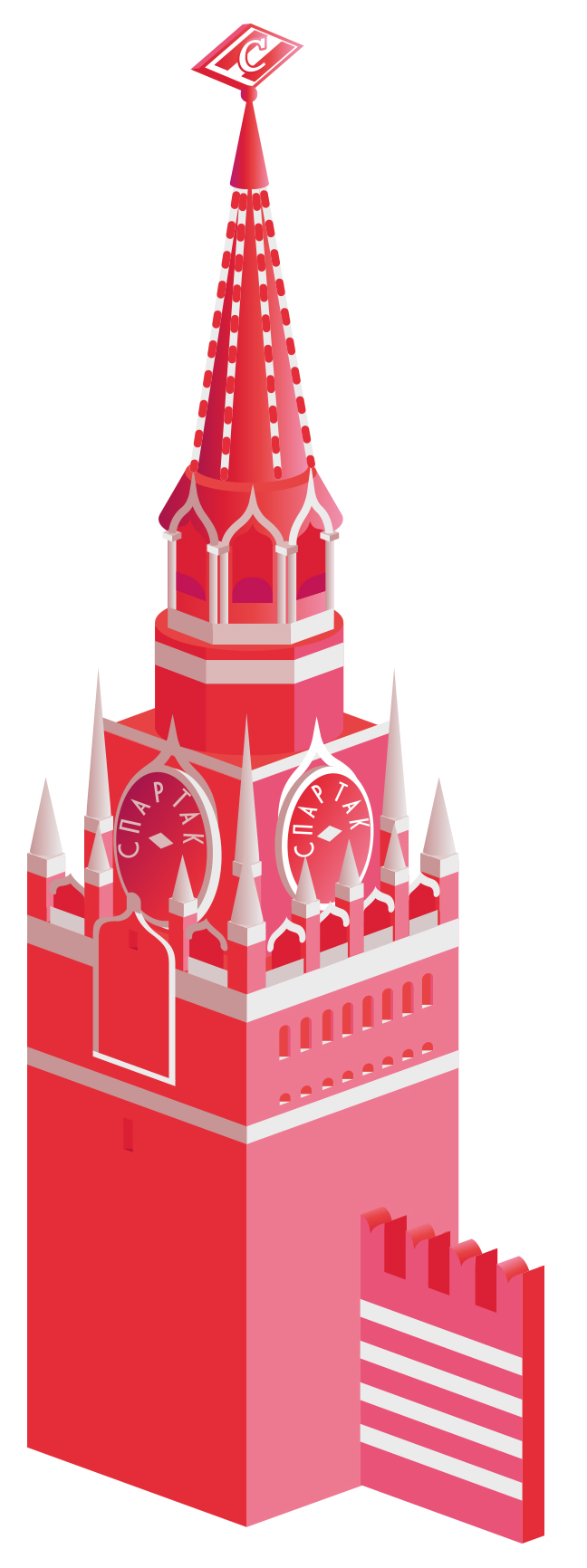 Представлено несколько композиций с городом, каждая графически объединена ромбом. Это еще больше усиливает идею, что Москва это Спартак.