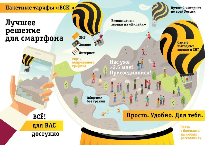 Дизайн-студия EASYCHART разработала серию рекламных плакатов с иллюстрированной инфографикой для продвижения тарифных пакетов «ВСЁ!».