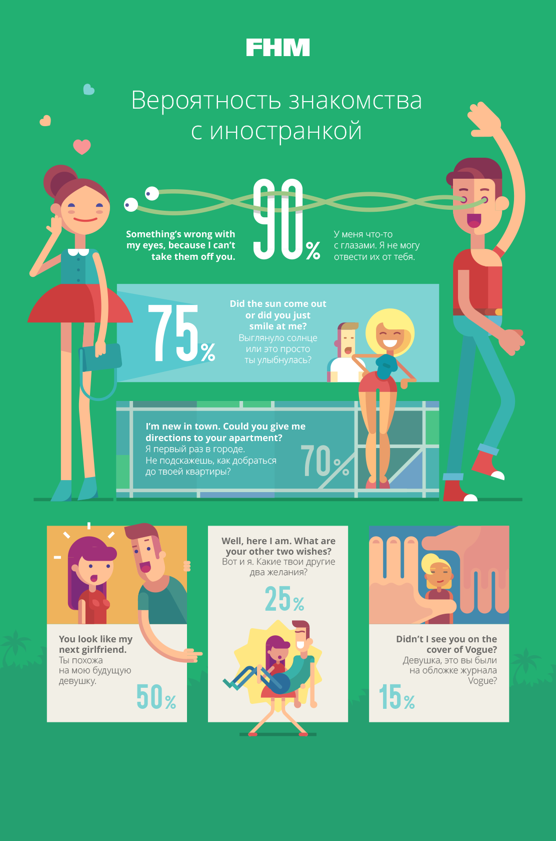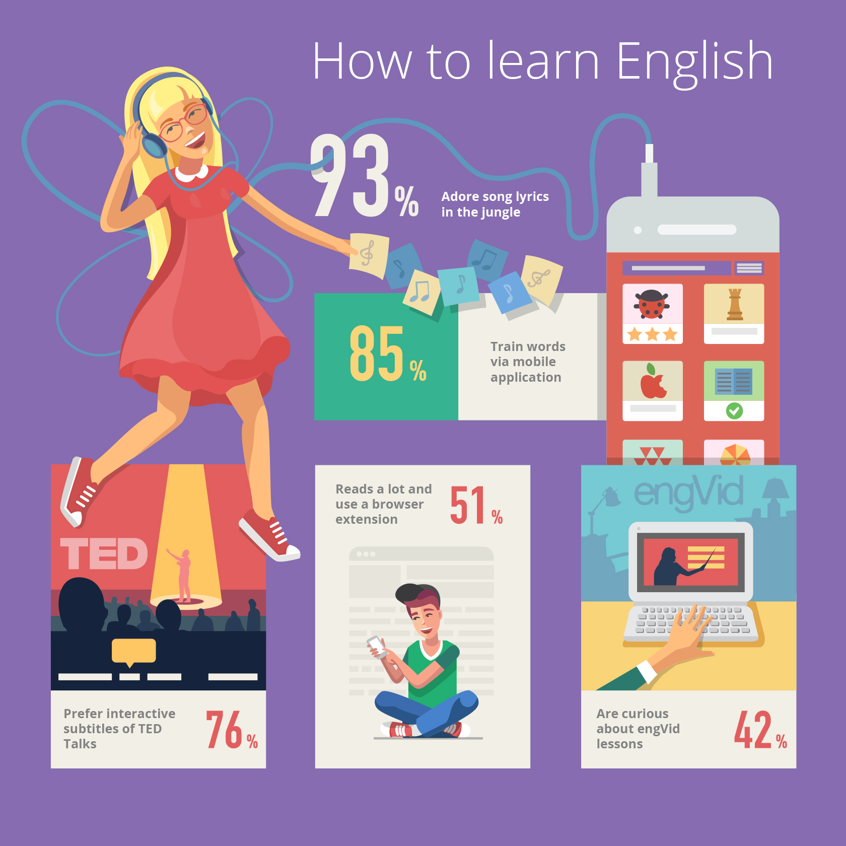 Разработка серии иллюстрированных инфографик для центра обучения иностранным языкам.